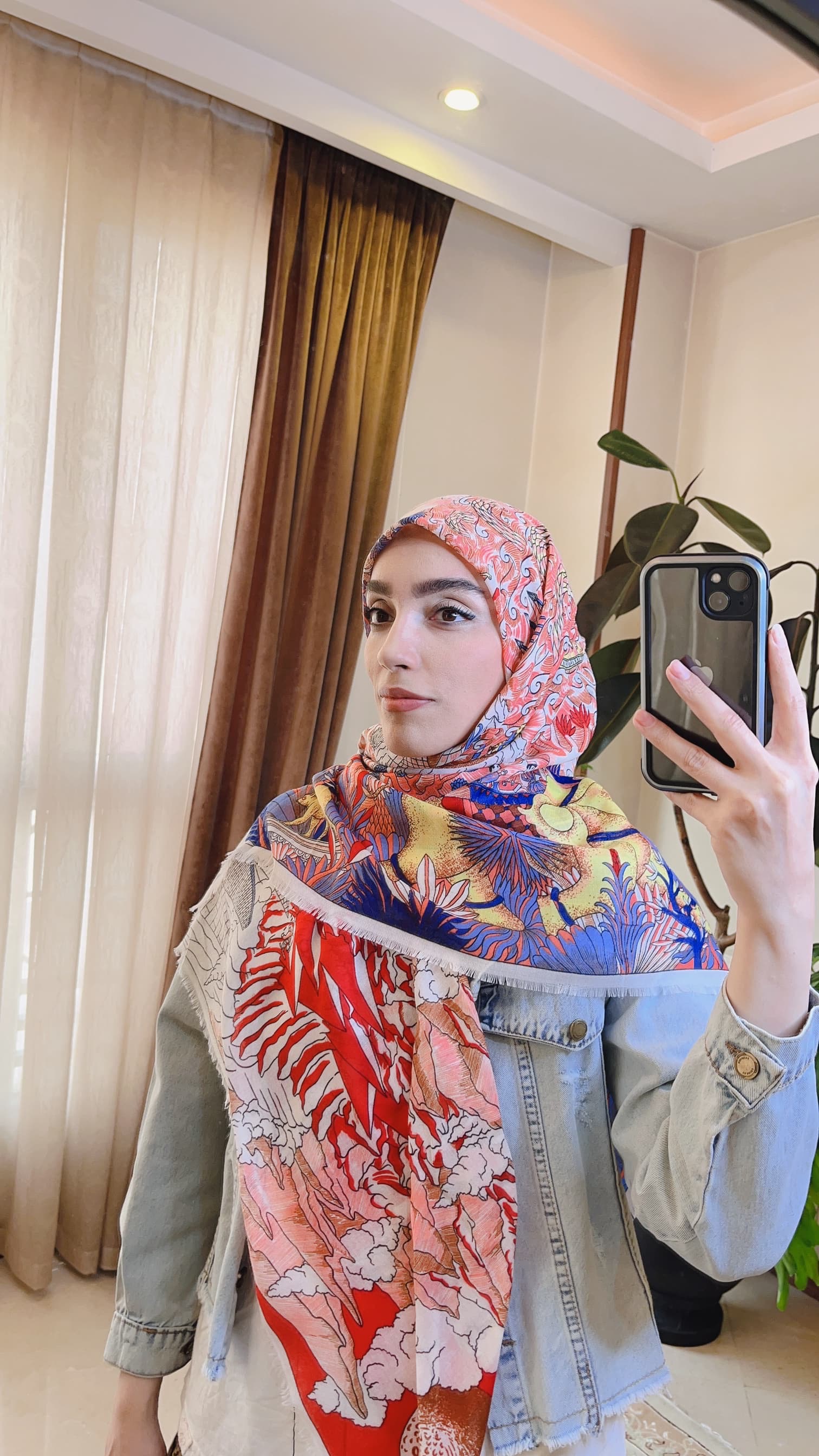 روسری نخی سیااسکارف طرحدار (نسبتا پاییزه)